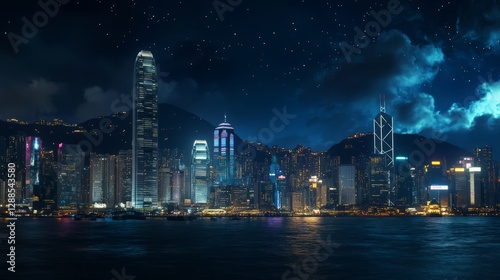 © SAHURI, Obraz premium Nightfall Over a Modern Metropolis.