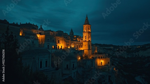 © Nuttaya Nampai, Fototapeta premium Nightfall Over Ancient Matera in Italy
