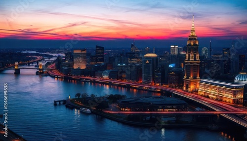 © azkiya Naila taleta , Fototapeta premium Nightfall over Hamburg: A Panoramic Cityscape