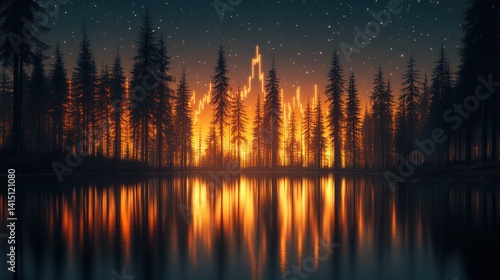 Fototapeta premium Nightfall Symphony: Candlestick Chart in a Serene Forest