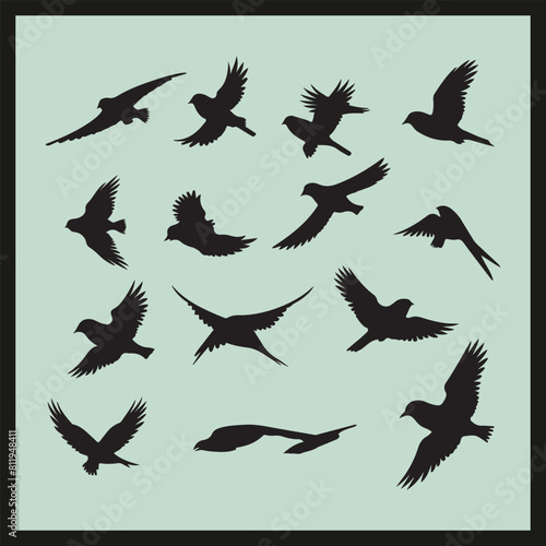 © Parvin, Obraz premium Nighthawk black silhouette set vector