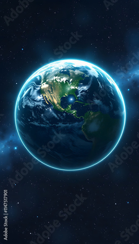 Obraz premium Nightly planet Earth in dark outer space, graphic novel art, with white tones