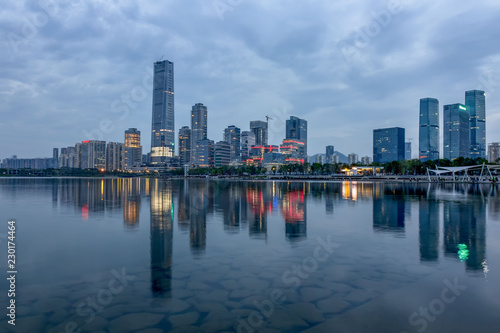 © 远华 丘, Fototapeta premium Nightscape of Shenzhen Talent Park City