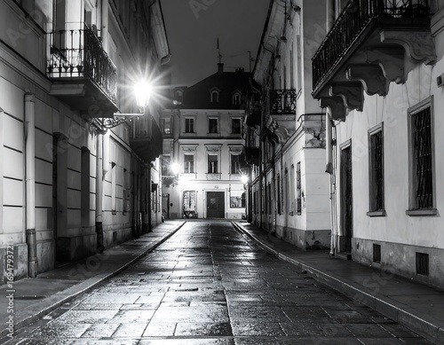 © jerawat, Obraz premium Nighttime alleyway, black and white