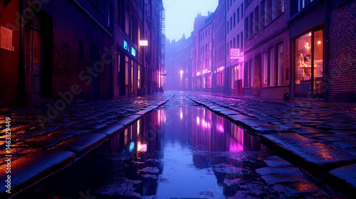© mbah, Fototapeta premium Nighttime alleyway reflections