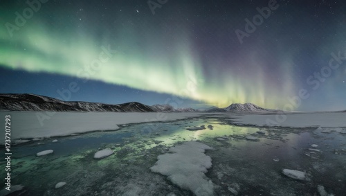 Naklejka premium Nighttime Arctic landscape with aurora borealis