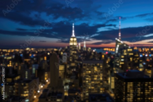 Obraz premium Nighttime blurred city skyline with bokeh effect captured at twilight using a...