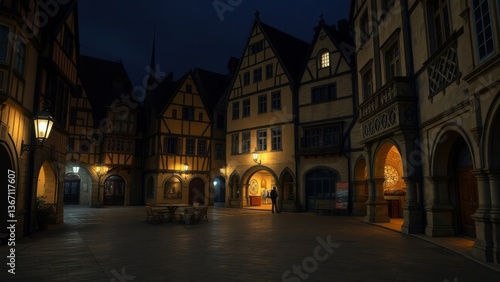 © Oleh, Fototapeta premium Nighttime Charm in an Old European Square