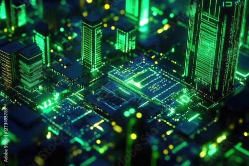 © Alla, Obraz premium Nighttime city view from a close angle, showing buildings and lights