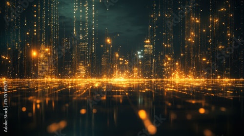 © nur, Obraz premium Nighttime cityscape illustration