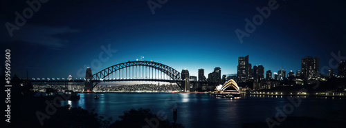 © Uolir, Naklejka premium Nighttime cityscape of Sydney with bridge in view - generative ai