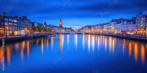 © innova, Fototapeta premium Nighttime Cityscape Reflecting in Calm Water
