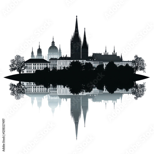 Obraz premium Nighttime Cityscape Silhouette Reflected in Water Stunning Architecture Dark...