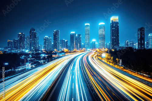 © M.Gierczyk, Obraz premium Nighttime cityscape with glowing windows
