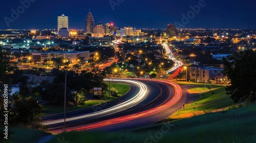 Fototapeta premium Nighttime Cityscape with Light Trails and Skyline View