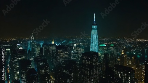 Fototapeta premium Nighttime Cityscape with Skyscrapers and Lights