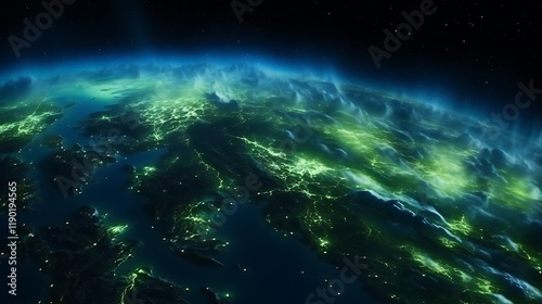 Obraz premium Nighttime Earth Glow Illuminates Coastal Cities and Islands