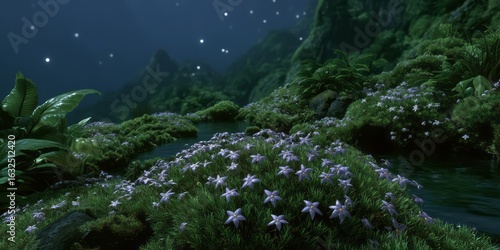 © HDR Image Creator, Fototapeta premium Nighttime flora hdr panorama lush jungle 360°