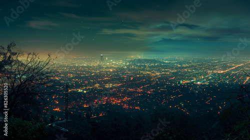 Obraz premium Nighttime in Urban Los Angeles: City Lights and Skyline Views