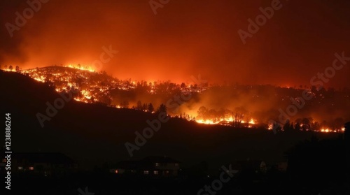 © MrMachyH, Fototapeta premium Nighttime Inferno on the Hillside