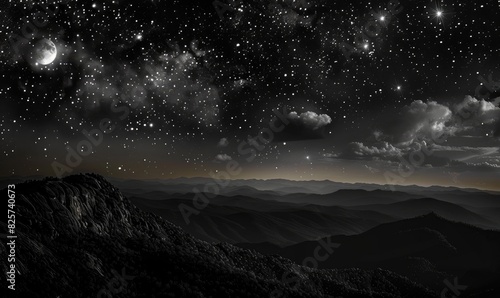 © Milan, Fototapeta premium nighttime landscape with a full moon illuminating a snow-covered mountain peak under a vast, starry sky.