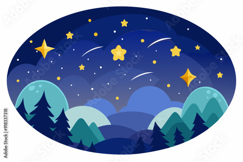 © nurdesign99, Naklejka premium Nighttime Landscape with Stars and Mountains