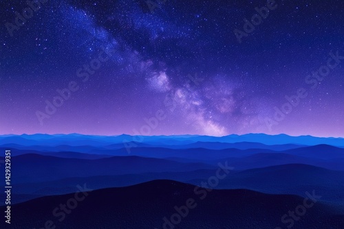 © Garage art, Fototapeta premium Nighttime mountain range panorama with Milky Way