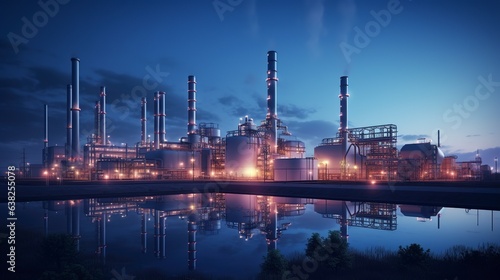 © KKC Studio, Fototapeta premium nighttime operations of an industrial refinery producing and processing crude oil.