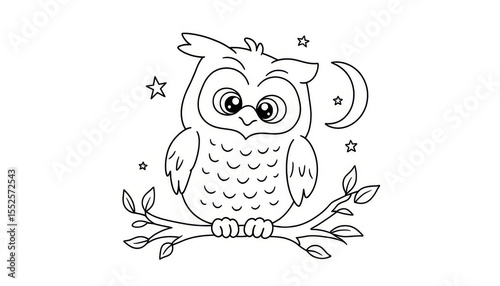 © AffiqAG, Fototapeta premium Nighttime Owl Colouring Page Adventure in Nature - A Fun Illustration for Kids