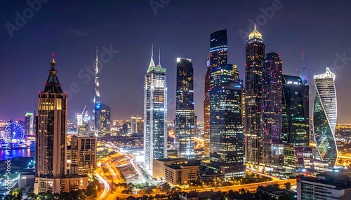 Fototapeta premium Nighttime panoramic view of a gleaming, modern metropolis with tall...