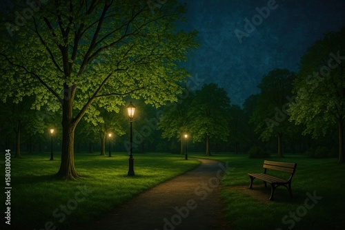 © The 2R Artificiality, Fototapeta premium Nighttime park scene with a blue grunge backdrop