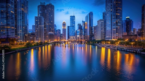 Naklejka premium Nighttime Photography: Discover the beauty of the night with your camera. Snap long-exposure photos of city lights, star trails, or lit landmarks, revealing the night’s unique charm.