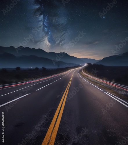 Fototapeta premium Nighttime photography of a deserted highway under starry sky, highway,...