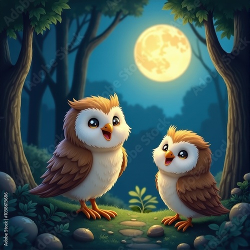 Obraz premium Nighttime Play Owlets and Friends
