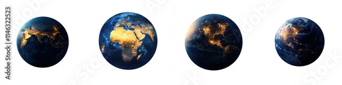 © Jeannaa, Fototapeta premium nighttime satellite images darkness concept. A series of Earth images showcasing illuminated continents, emphasizing the planet's beauty and global connectivity at night.