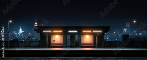 © ckybe, Fototapeta premium Nighttime scene of a vibrant urban subway station with brightly illuminated busy platforms