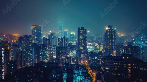 Obraz premium Nighttime Skyline of a Densely Populated City