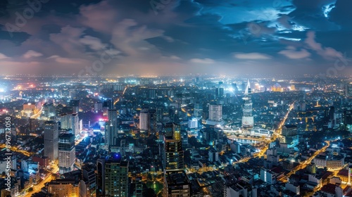 © BerkahStock, Naklejka premium Nighttime Skyline of a Vibrant City