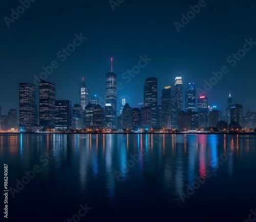 © Adobe Contributor, Fototapeta premium Nighttime Skyline of City with Reflections on Water