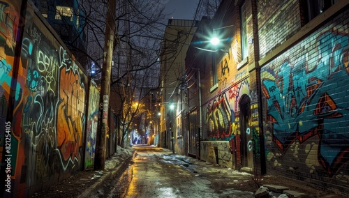 Fototapeta premium Nighttime Urban Alley with Graffiti Art