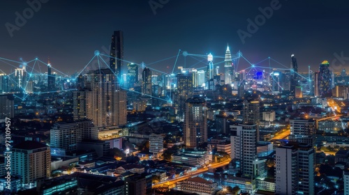 © ISLAH, Fototapeta premium Nighttime View of a Connected Cityscape