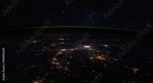 Fototapeta premium Nighttime view of illuminated Earth from orbit with glowing city lights and...
