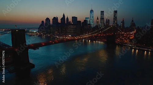 Fototapeta premium Nighttime view of Manhattan skyline and Brooklyn Bridge