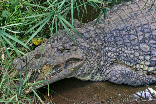 Obraz premium Nile Crocodile, Crocodylus niloticus, open mouth, Zimbabwe