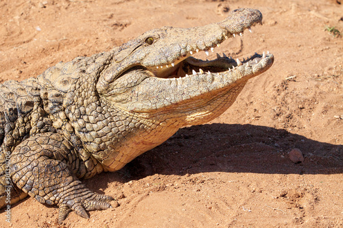 Obraz premium Nile Crocodile, up close, on land, sharp, clear, teeth and eyes, croc,