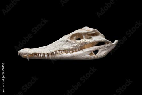 © herraez, Naklejka premium Nilo Crocodile skull on black isolated background
