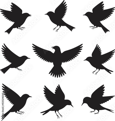 Obraz premium Nine Black Bird Silhouettes Flight Variations birds