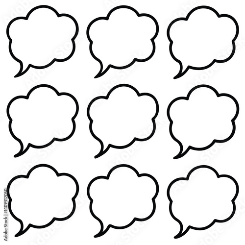 Fototapeta premium Nine Black Outline Speech Bubbles