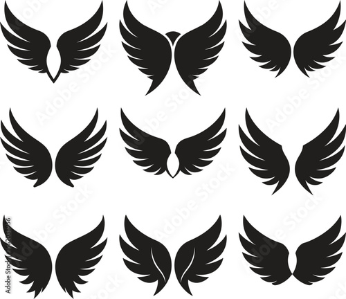 © SALAHUDDIN, Fototapeta premium Nine Black Wing Vector Designs for Graphic Use