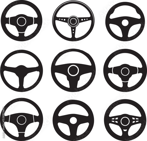 © Bhismodeb, Naklejka premium Nine different car steering wheel icons set. eps-10